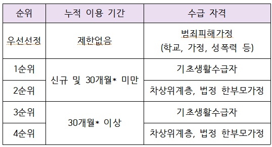 4) 수급자격 확인 및 우선순위 기준